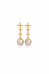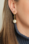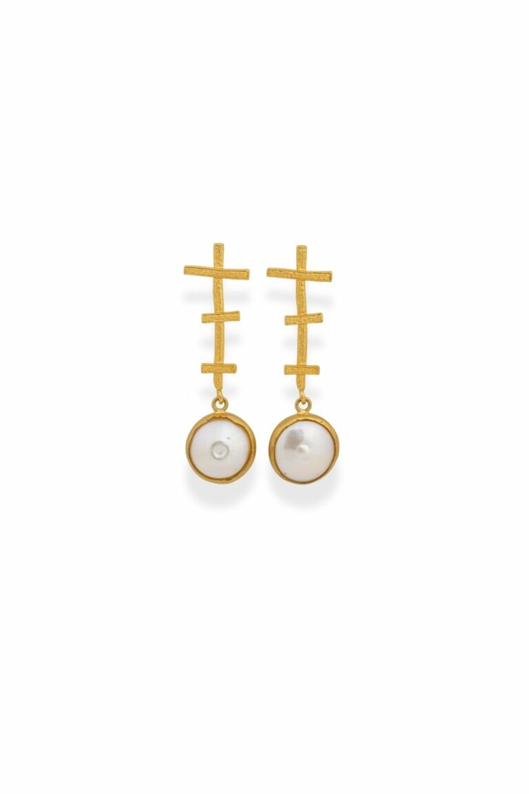 Camilo Pearl Küpe, üst kısmındaki lineer form detayları ve altındaki yuvarlak inci dokunuşuyla güçlü bir siluet oluşturur. Geometrik çizgiler ile doğal inci formunun dengesi, tasarıma modern ama zamansız bir karakter kazandırır.