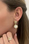 Nerida Pearl Küpe, nar formundan ilham alan yuvarlak silueti ve iç yüzeyindeki inci detaylarıyla zarif ve sıcak bir karakter sunar. Altın kaplamanın yumuşak ışıltısı, inci dokusuyla dengelenerek küpeye tatlı ama modern bir ifade kazandırır. Günlük kombinlere feminen bir dokunuş eklemek ya da özel anlarda sade bir şıklık yaratmak için ideal bir parçadır.