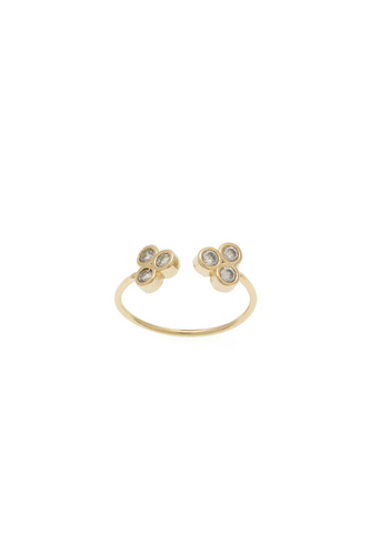 Minimal formuyla dikkat çeken Open Ring Rhinestone Yüzük, iki ucu açık tasarımı ve zirkon taşlı detaylarıyla zarif bir ışıltı sunar. Her iki uçta üçer adet taşla bezenmiş yuvarlak formlar, yüzüğe dengeli bir simetri ve modern bir ifade kazandırır. Ayarlanabilir yapısıyla her parmağa uyum sağlar; günlük şıklıkta ya da özel kombinlerde rahatlıkla tercih edilebilir.